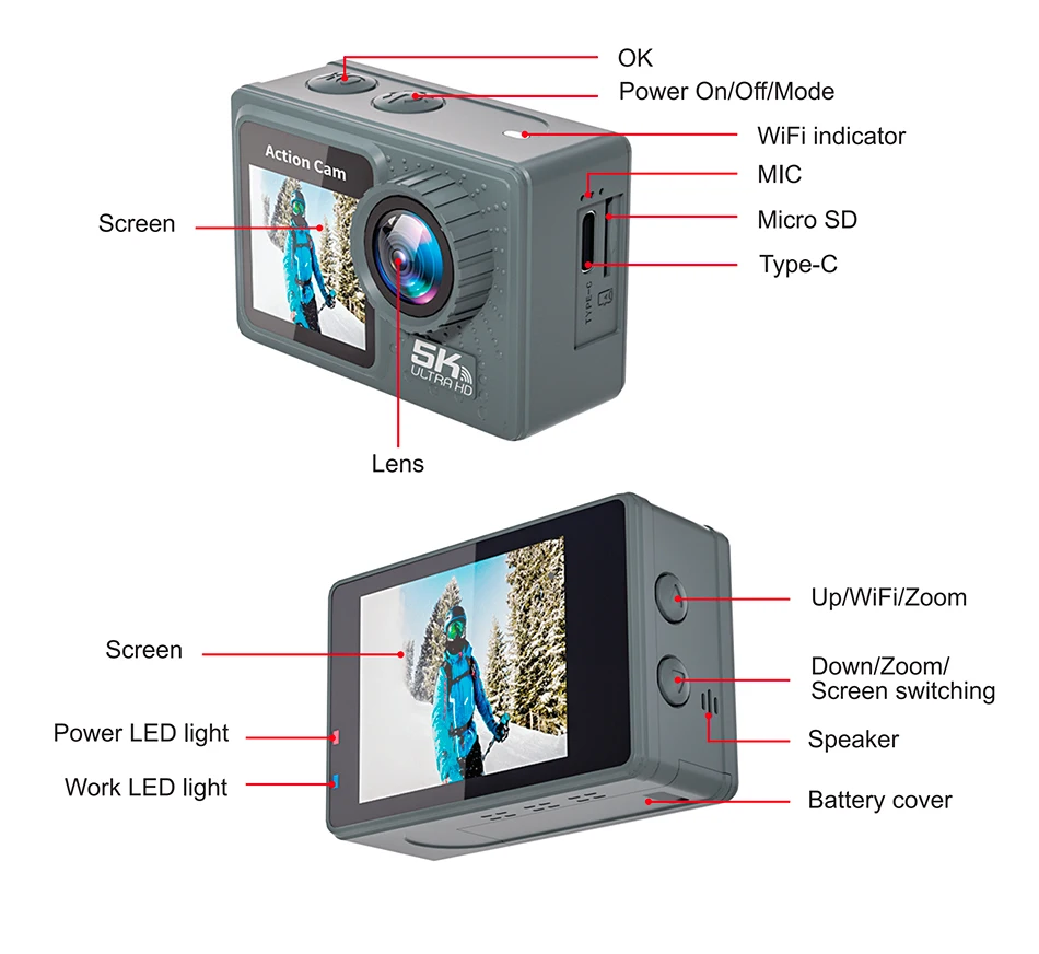 videos, photos, Slow motion, voice recording, video dlisplay, and changeable battery, it's the best choice for outdoor sports